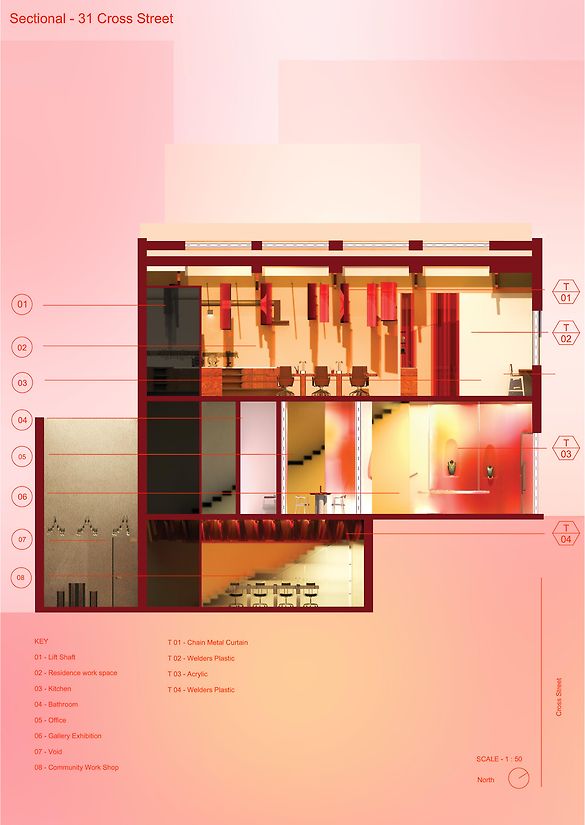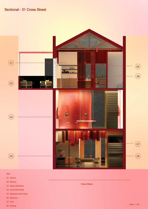 The material palette draws inspiration from the surrounding urban development on Cross Street.