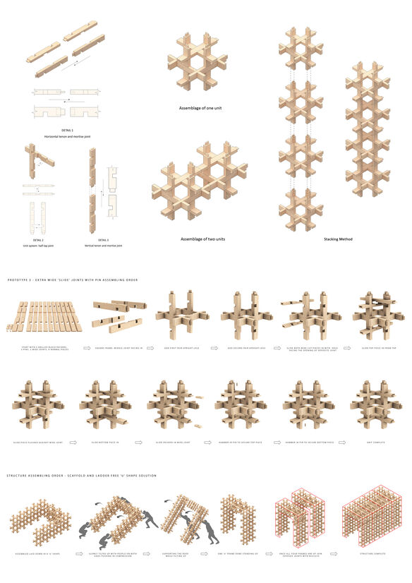 The project is not only about reviving a traditional craftsmanship but also about reviving the community through an architectural language. With the advancement of technology, the repetitive and once labor-intensive complex joints can now be programmed and mass-produced with high level of accuracy using the Computer Numerical Control machine, allowing for efficient and effective fabrication. In the wider spectrum, application of this versatile technique can be envisioned as a structural floor, roof system, wall, foundation, staircase, lights, furniture or even as a whole self-supporting, load-bearing building in the future. The idea denoted in this architectonic narrates that all the negativity and xenophobia caused by the coronavirus will eventually fade away, and the design of this system will bring positivity to the community and reunite people together to be stronger.