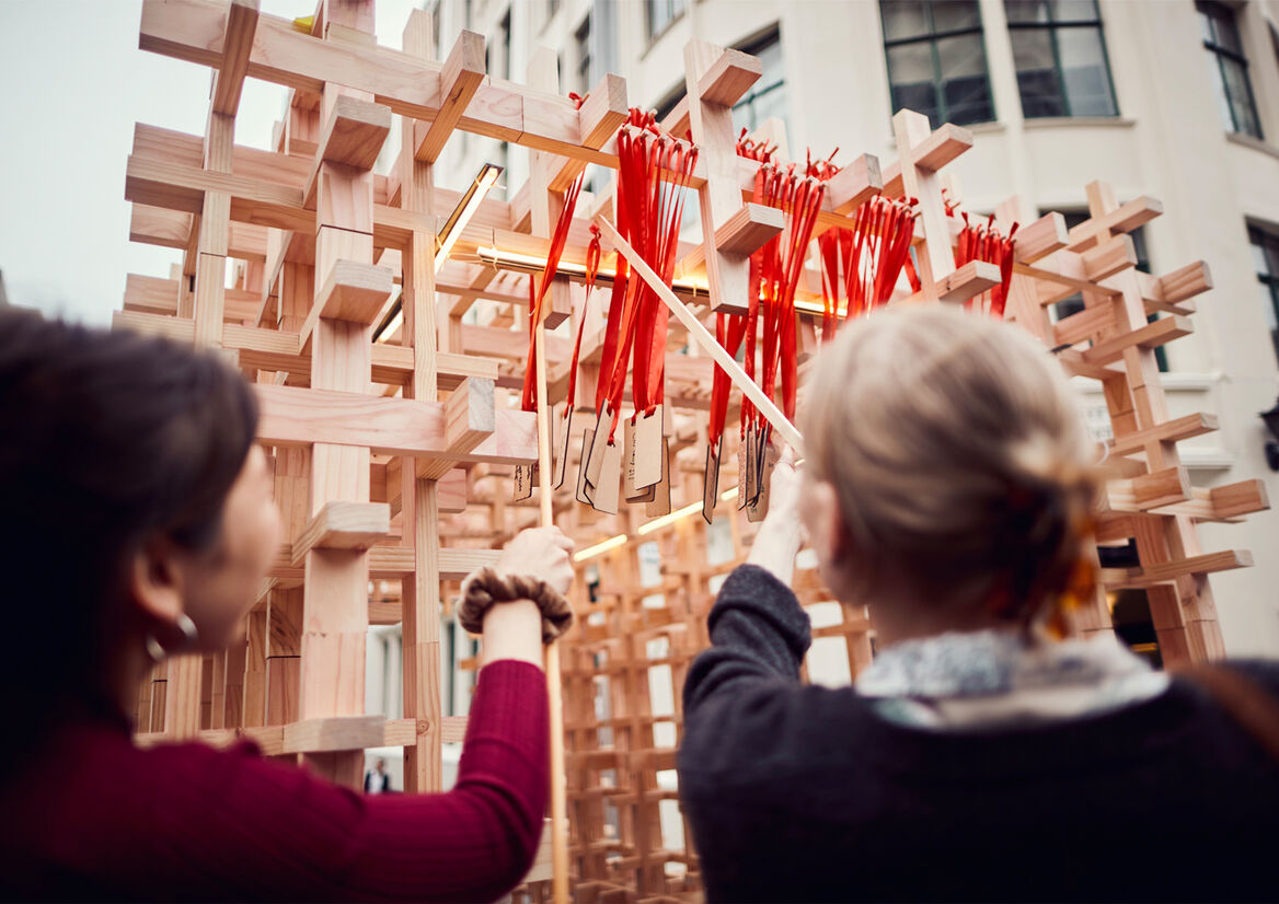 The ‘Hashtag Wish Tree’ represents a motif of China, as it was one of the first countries majorly struck by the crisis. Consisting over 3,000 pieces, each component denotes as an individual interlocking together with another; signifying strength and unity when connected as a whole.