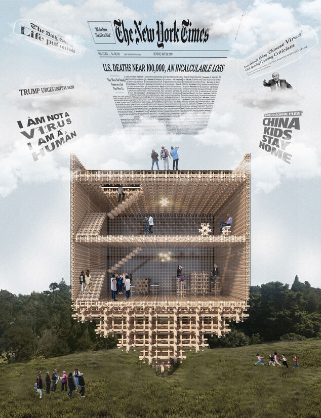Inspired by the traditional Chinese bracket system; the Dou gong (斗拱), the thesis explores to revive this artistry through the means of modern fabrication. By following the process of research, design, build and application of an architectural installation the project critically questions: ‘How can we employ the advancement of modern technology to revive a long-lost ancient building technique of the traditional Chinese joinery system, and create a monumental piece in commemoration of the COVID-19 global pandemic?’ In response, two different scaled architectural installations are designed to commemorate this historic event: the realization of the 'Hashtag Wish Tree' for the annual Auckland Art Week and Kaipara Coast Sculpture Gardens Exhibition and the 'Sentimental Piece' proposal as one of the top finalists for the 2020 Brick Bay Competition.