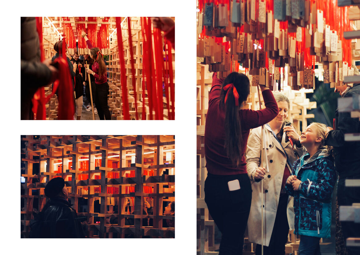 Visitors are given the opportunity to share and reflect on their personal lockdown experiences or make a wish through an interactive element; this act of tying a ribbon to a tree – a traditional Chinese ritual that symbolizes health and prosperity. As people enter the ‘void’; which is a strong representation of the deceased and portrayed as an ‘absence’ of life, they will hang up their customized ribbons in a chronological order. New Zealand’s case curve will then gradually start to evolve over time as people emerge.