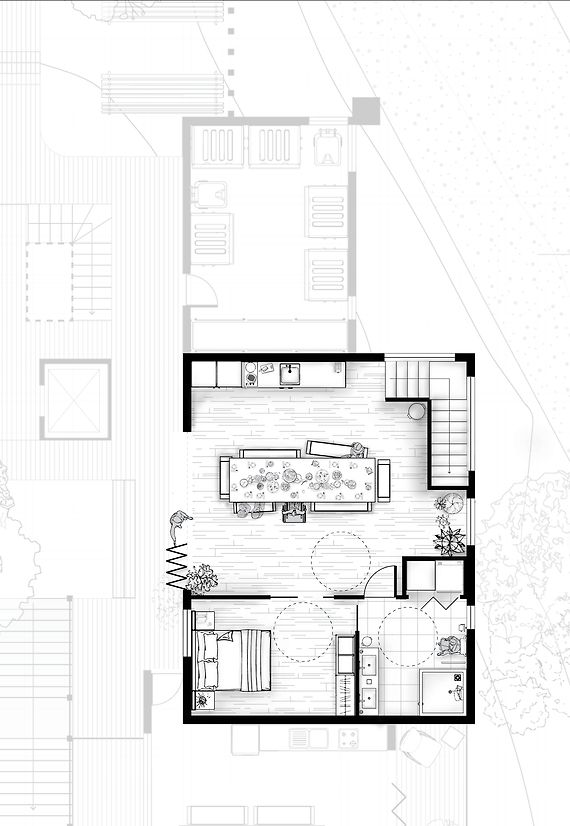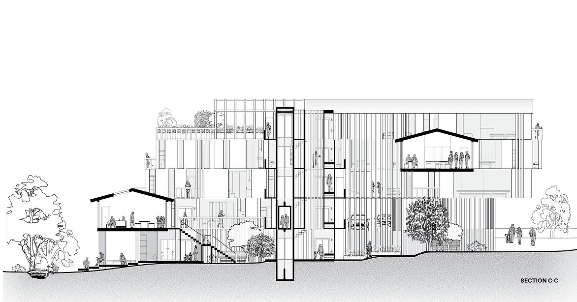 The urban Papakāinga project embodies the ethos of Māori living, focusing on inclusivity, accessibility, and adaptability to accommodate an intergenerational lifestyle that anticipates future changes. Lower levels are dedicated to kaumātua, featuring expanded spaces for accessibility, along with a larger kitchen and dining area designed to foster familial gatherings and communal interaction.