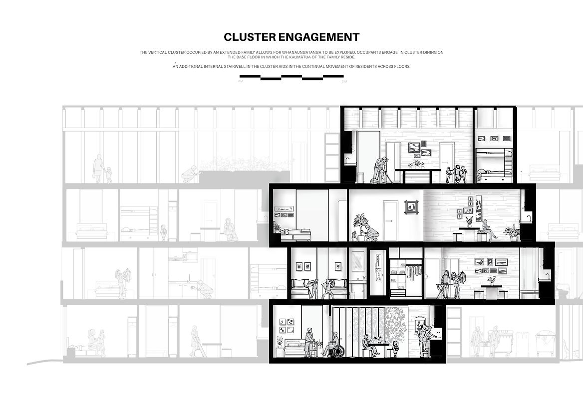 Our integrated approach ensures that the design is not only culturally and socially enriching but also economically viable. The project supports commercial adaptability by enabling collective ownership within each cluster and offering flexibility to lease or sell individual units in response to evolving familial needs. This ensures that the Papakāinga remains responsive to the evolving needs of the community while maintaining its integrity and overarching objectives.
