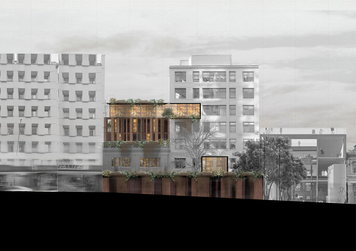 The performance of this project centres around context and cultural aspects of High Street. The building punctures the street with a series of pods disrupting the existing footpath flow creating a forced invitation into the building. This is a threshold on the perpendicular with people coming from Freyburg Place, allowing gradual change from outside to inside. Culturally the building has been designed around a hospitality culture and works by day and by night allowing daytime socializing though the ground floor café and rooftop restaurant pavilion, with the underground bar and restaurant becoming the focus in the evenings. Levels 1-3 are designed around the current movement to work from home. Meeting spaces will still be needed and with the absence of the traditional office. Adaptable, shared spaces like this will likely be in demand in the post covid climate.