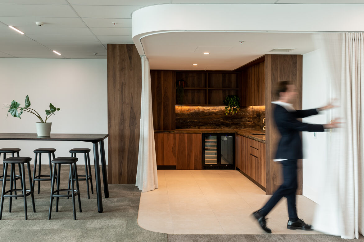 We drew inspiration for the design and detailing of the offices from an Auckland architectural icon – the Auckland Harbour Bridge. All forms, curves and junctions in the office fit-out have been rationalised through this filter, and the ways that the different materials and curves intersect has created a range of interesting details that highlight and showcase the space.