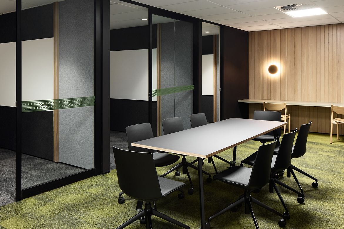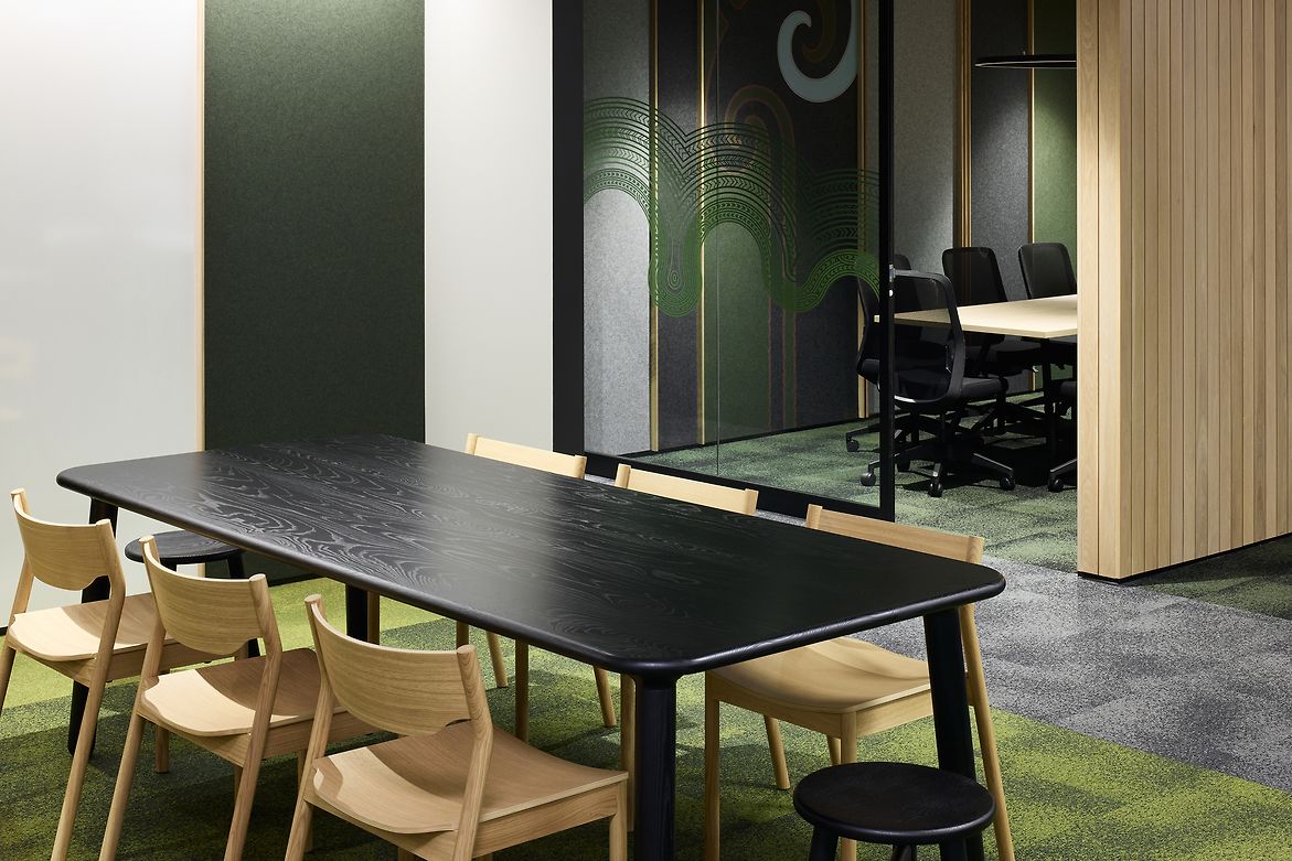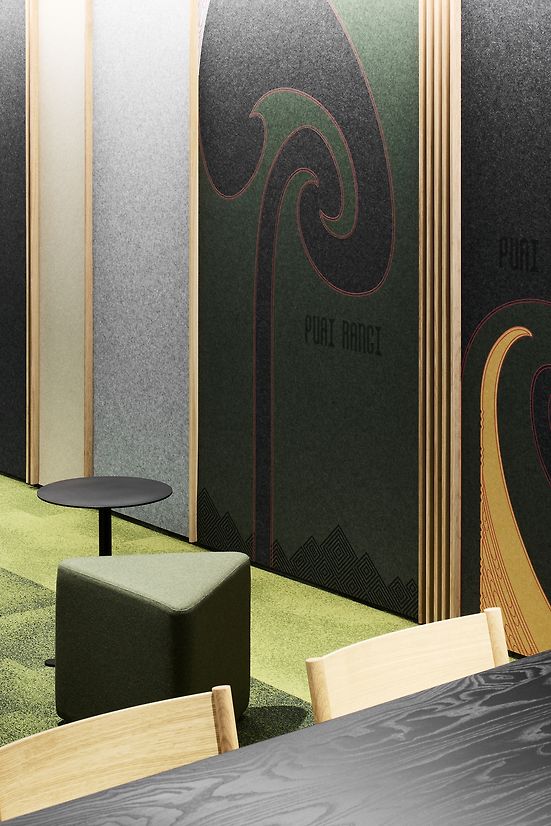 The outstanding design of Te Kāhui Tika Tangata fully embodies their commitment as a Te Tiriti partner while also creating a workplace design that fosters collaboration, inclusivity, and shared values. The mahi toi used in this space is an exceptional blend of traditional and contemporary modes of Māori design, that seamlessly blend from one to the next. The aho(thread) throughout the space not only binds together the cultural narrative and designs but also connects the spaces throughout, this has created a workplace design of the highest Gold Pin standard.