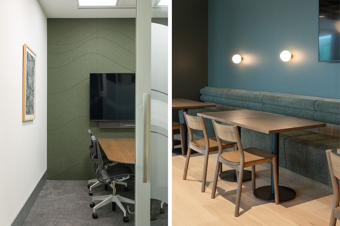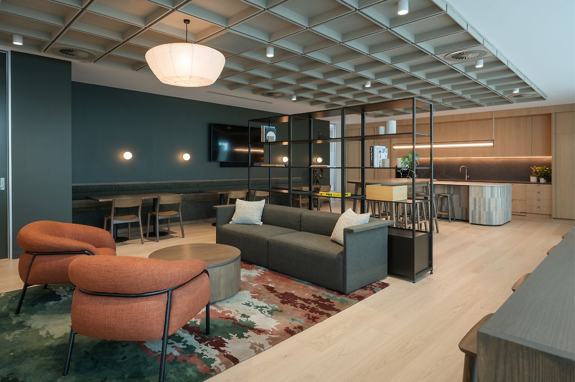 The previously oversized foyer has been transformed into a warm, flexible hospitality space—used daily by staff and easily adapted for client events, training, and hosting. This marks a major shift in how the Hamilton office engages with both its people and its community—bringing generosity, connectivity, and brand expression to the heart of the experience.