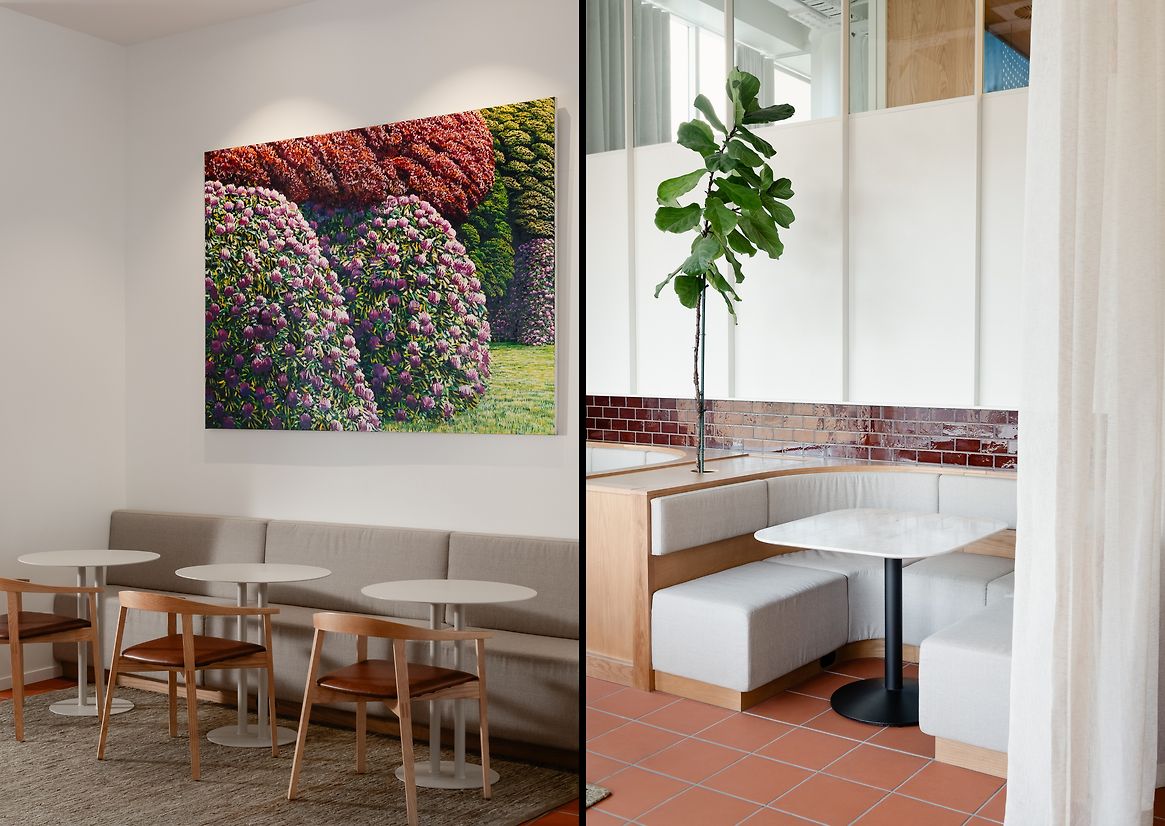 Core to the client brief was a public street-facing, social foyer space that could be used for morning coffees, team wide presentations, client events and as a quiet place for prospect and refuge away from the main work station zones. The generous space features furniture and drapes that can be reconfigured to host town hall type gatherings of up to 70 people and has become an important connecting point for the organisation to build a sense of belonging and culture.