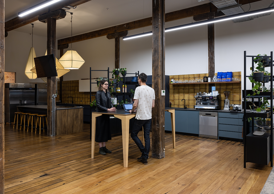 The brief called for a space that could function both as a demonstration kitchen for clients, while providing a modern and flexible workplace for their employees. An open plan office that embraced an agile work environment, the new workplace was also designed to draw employees back in the office after COVID lockdowns.
