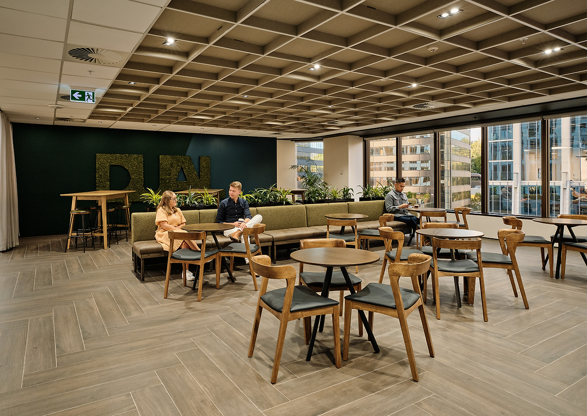 Following an organisational rebrand, DUAL needed an environment that aligned with their evolving culture and ambitions. The space had to feel confident, future-focused, and welcoming while also supporting hybrid working, team connection, and day-to-day flexibility. A core requirement was a multi-use hub for internal events, presentations, and townhalls.