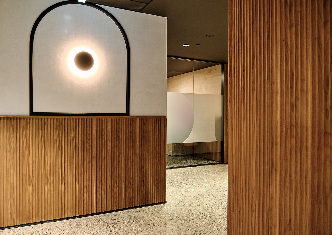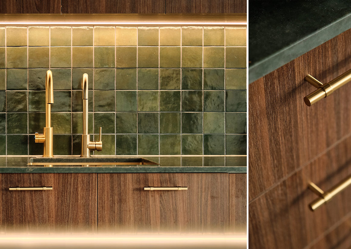 Materiality and brand were deeply integrated. Textural finishes such as Ripple Flex Oak, brushed brass, Jardin Emerald stone, and Zellige tiles reflect the emotional tone of the new identity. Feature walls, custom artwork, and moss installations connect culture with story. These elements weren’t just layered for aesthetics, they were curated to evoke trust, energy, and warmth.