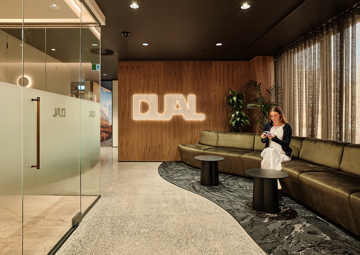 DUAL’s new Auckland workplace presented a unique opportunity: to design a space that physically reflects the company’s refreshed brand identity and sets a new standard for how the business shows up to its people, clients, and industry. This wasn’t just about creating a workspace it was about capturing a bold moment of transformation.