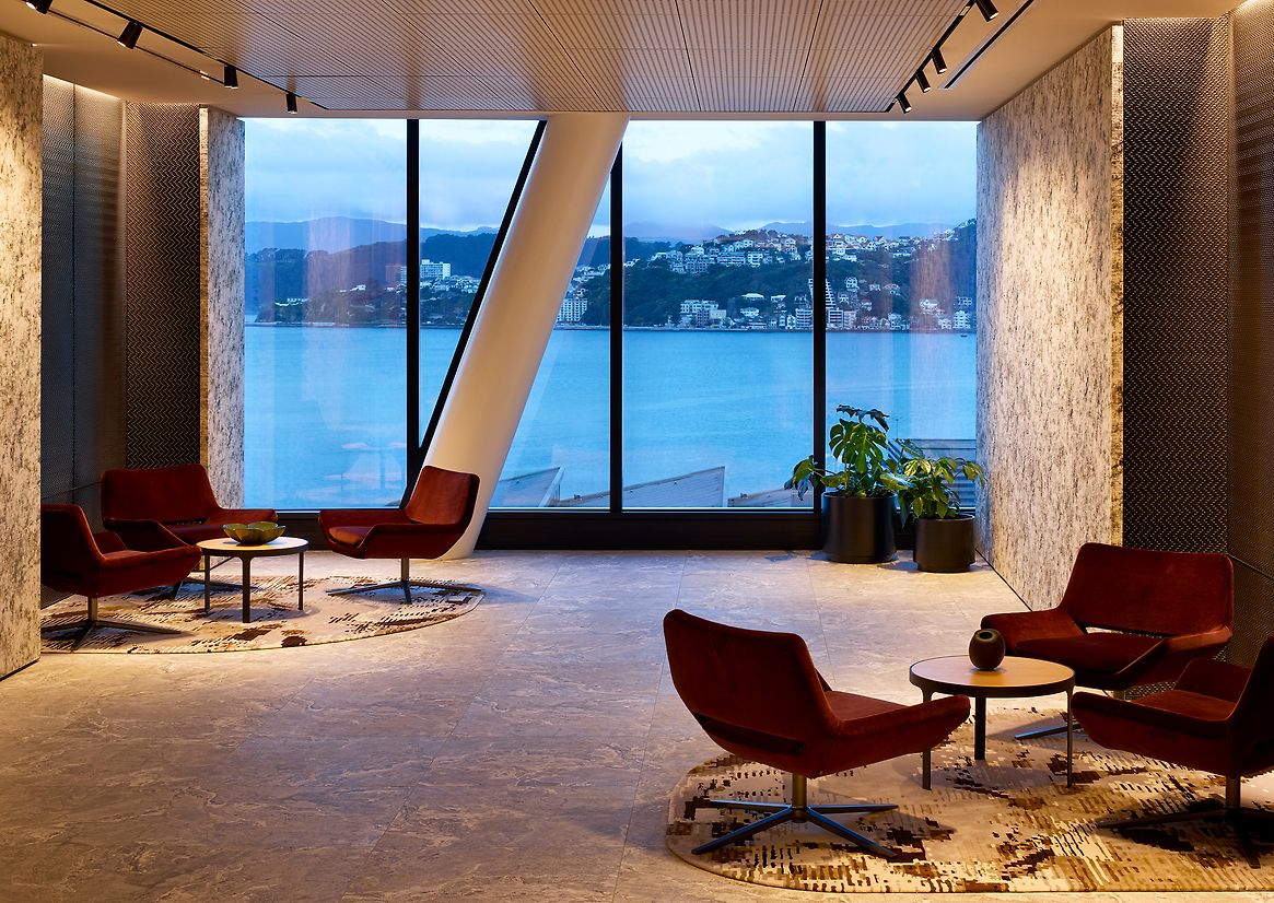 The brief called for a high-quality, contemporary work environment that is warm and inviting to both employees and clients. The design narrative is inspired by the layering of Wellington’s hills that surround the harbour, translating into the layering of materials across the fit-out, from dark to light, from the city side to the harbourside.