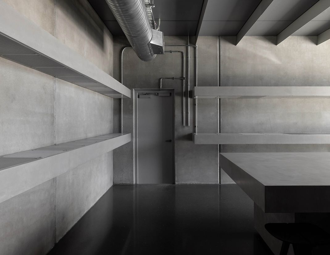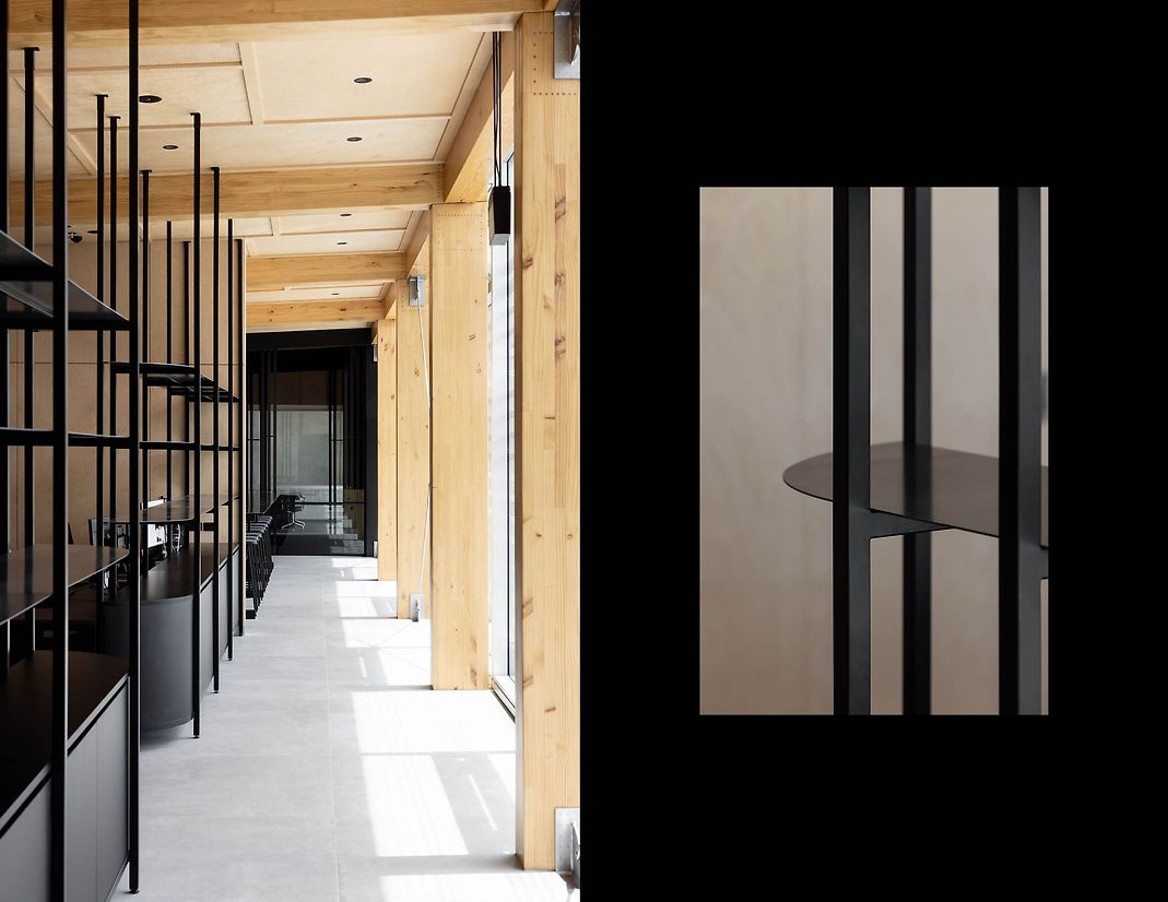 A rigorously spartan environment of greyscale finishes drives home the utilitarian, with warmth introduced by way of structural timber & ply to areas that required a certain softness. The cold-rolled steel still has the stamps, and comforts are limited to those that are necessary.