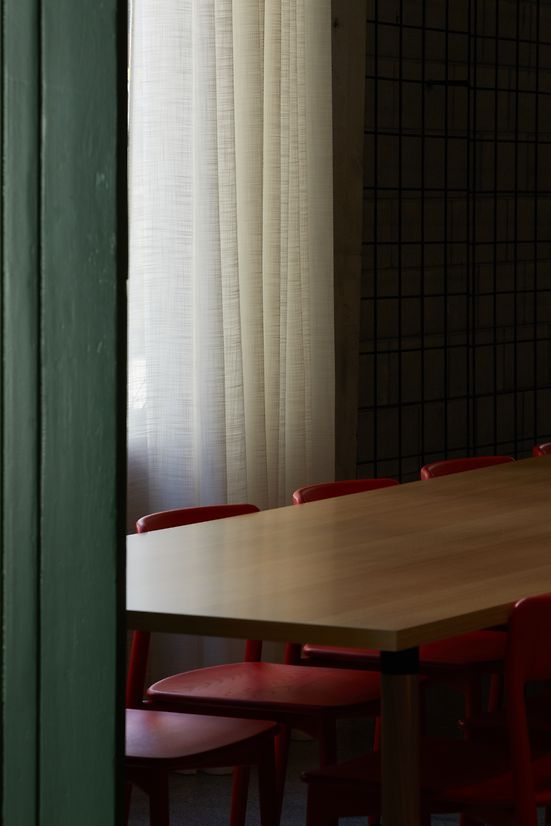 On the other side of the spine is the work area – high enough to give the staff privacy from the street, but low enough to allow natural light to come through.