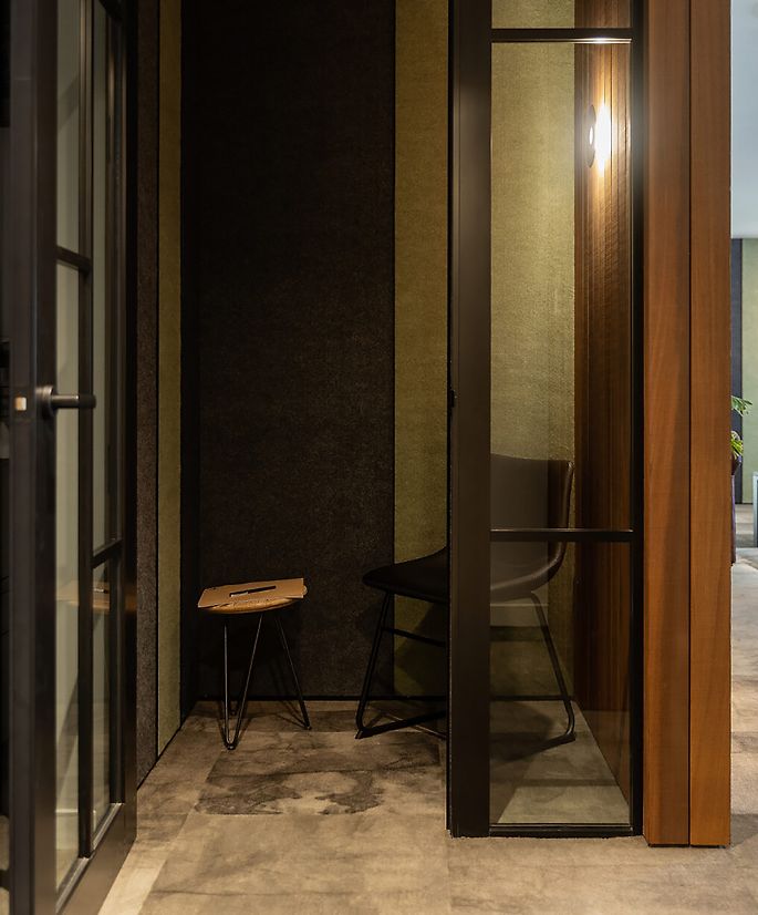 The program and required narrative led to the creation of several key features, including a north facing fully equipped kitchen and social space promoting subconscious congregation, a private phone booth providing a quiet space for focused conversations or moments of solitude, and a discreet access point to a future loft space. These elements make the space highly functional while maintaining visual appeal.