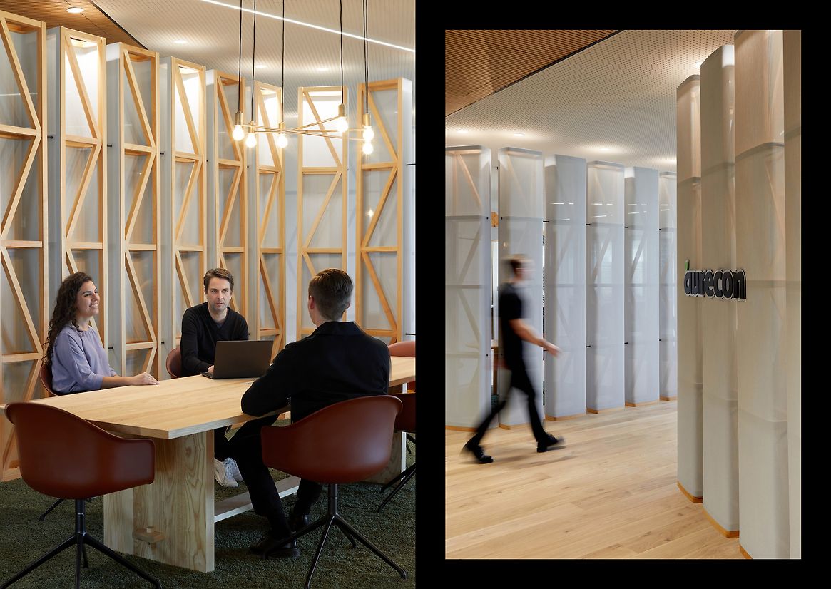 Translating Aurecon's core ethos of innovation, collaboration, and cultural sensitivity into a dynamic workspace where the interplay of design elements reflects a strong connection to the land, fostering curiosity and interaction while embracing sustainable practices.
