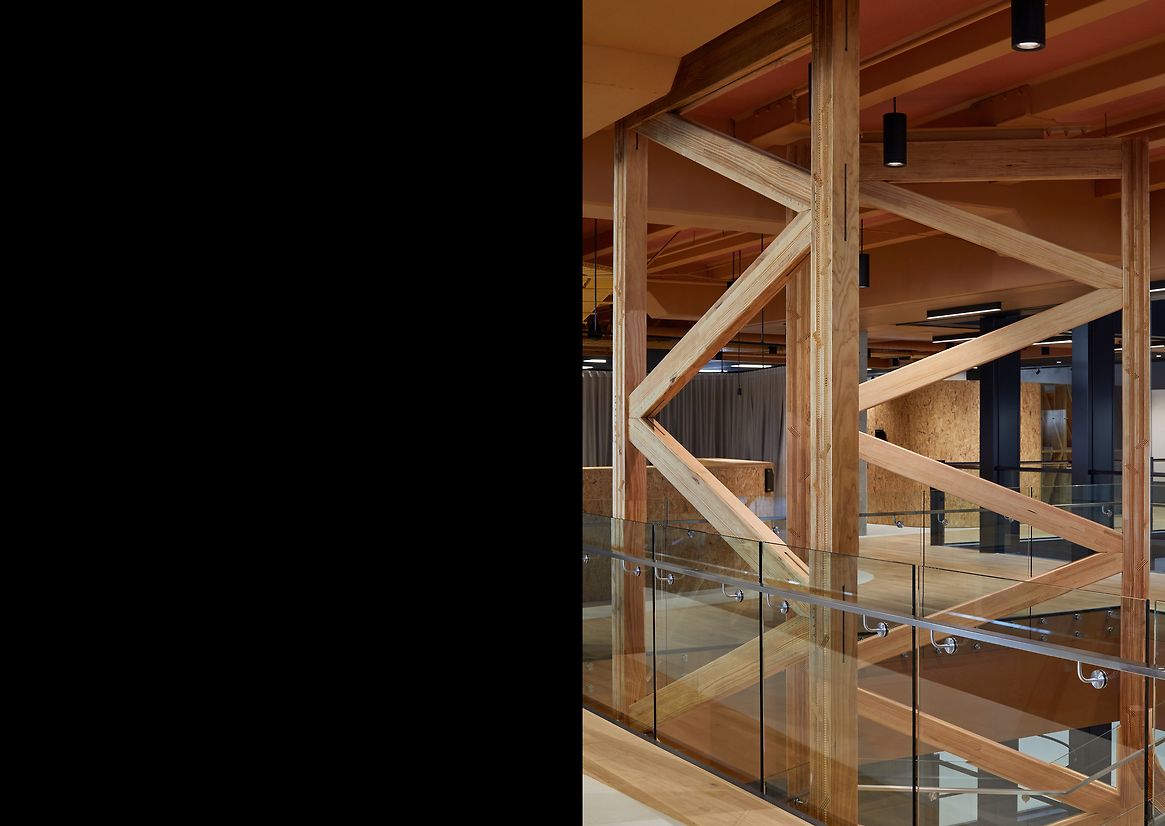 The centrepiece of The Curious Adventurer narrative is the inter-connecting stair between Aurecon’s two levels - a CLT Timber stair with structural support from a glulam truss designed in the form of a taurapa – the stern of a waka – and engineered in-house by Aurecon to span from the lower floor to the underside of the upper floor above. The truss is adorned with a unique aukaha pattern, co-created for the project. Aukaha should be conceptually considered as a point of convergence: of communities; of iwi narratives; of people with environment; between ocean and land; and of communities, where relationships are strengthened.
