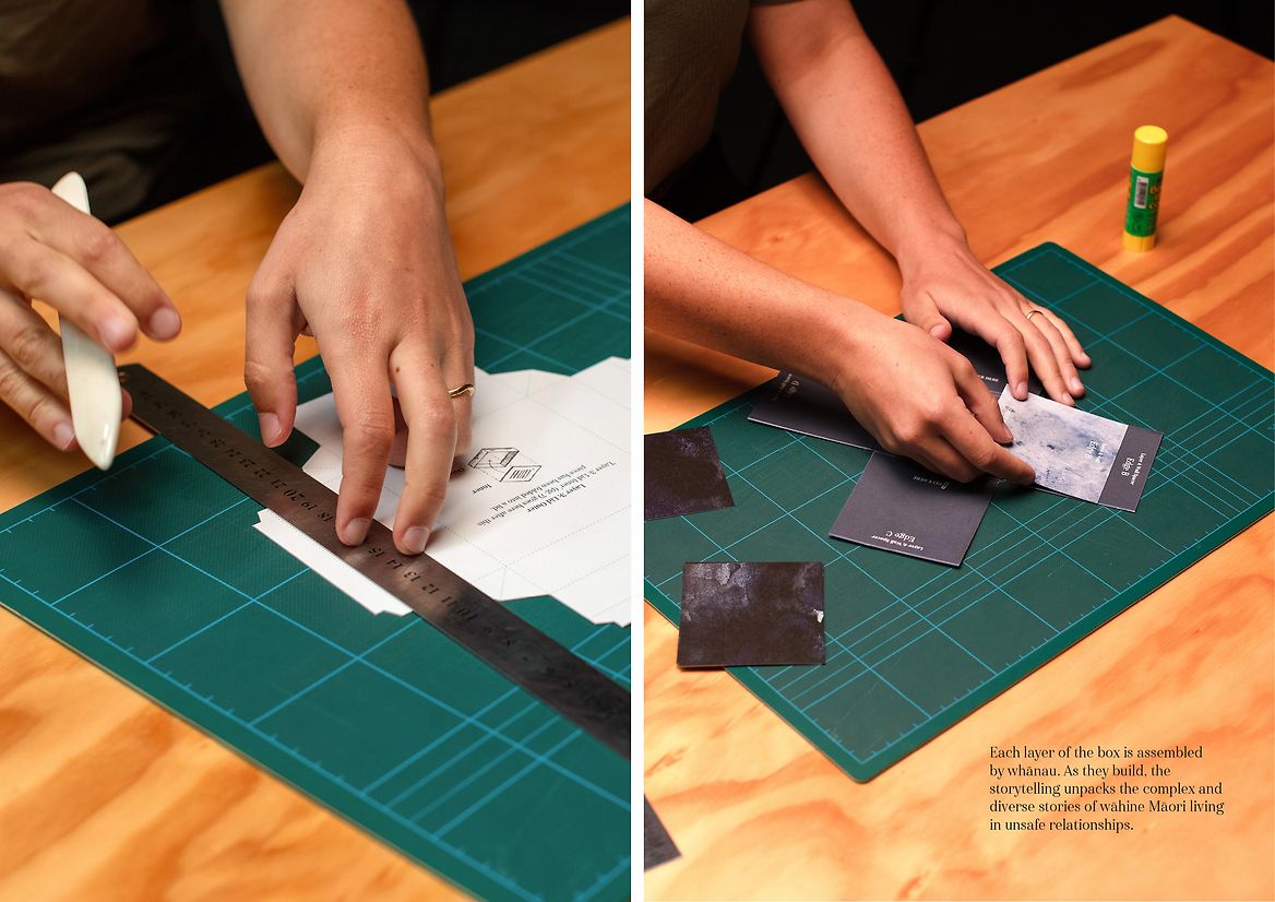 Whānau and kaimahi can receive this resource as a flat pack. This is a series of pages with instructions to build the tool. While building, whānau and kaimahi journey through the story of the resource, developing an understanding of the complex contexts in which whānau Māori navigate unsafe relationships. The completed resource could be a learning/healing/counselling taonga for whānau.