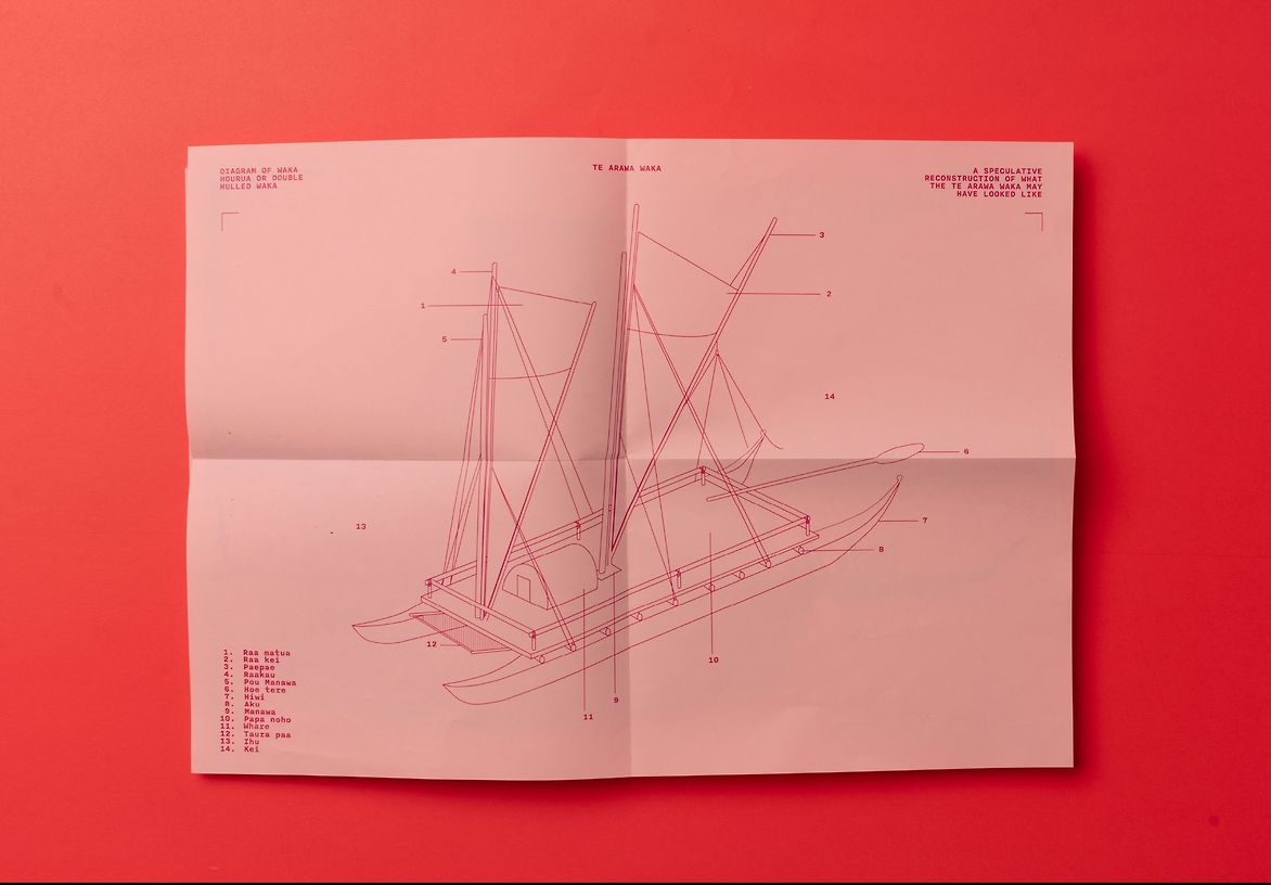 Readers are invited to physically interact with the work, laying out the posters and using the glossary alongside the text to deepen engagement with te reo and cultural knowledge, exploring the design’s layered form.