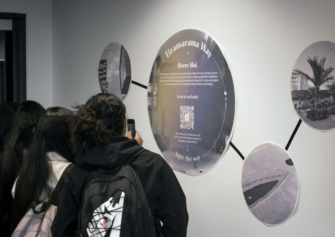 The Tūrama experience of 2022 activates the space of Tīramarama Way through its three-part journey of Exploration, Connection and Reflection. Starting with an accessible Instagram AR filter, Rangatahi can scan featured photographs or visuals to reveal a 3D ‘window’ to interact with Māori values relative to the location. The wayfinding from these posters will then lead the user to the discovery hub where they can connect more visually with these values, they can then reflect inward via our constellation creation interface by applying their nickname, date of birth, core values and aspirations to create their own projected personalised constellation in front of them. Their constellation will allow a moment of viewing before the next steps of becoming a part of a night sky with others' own constellations.