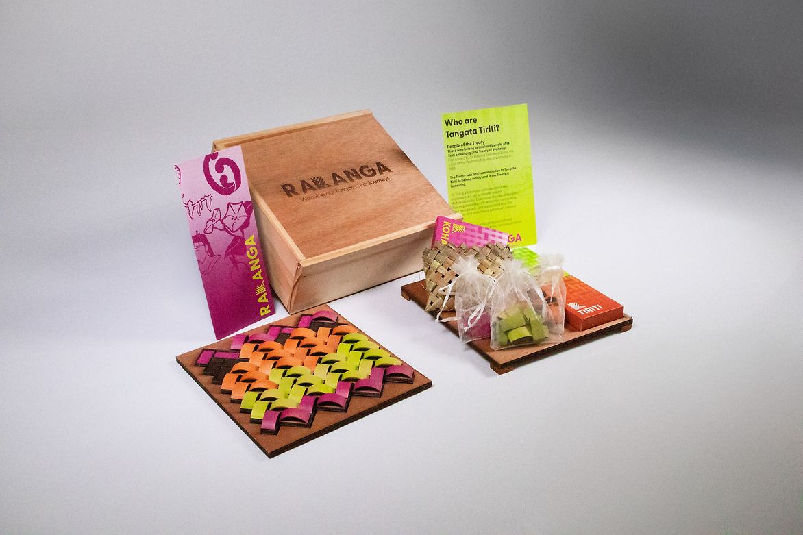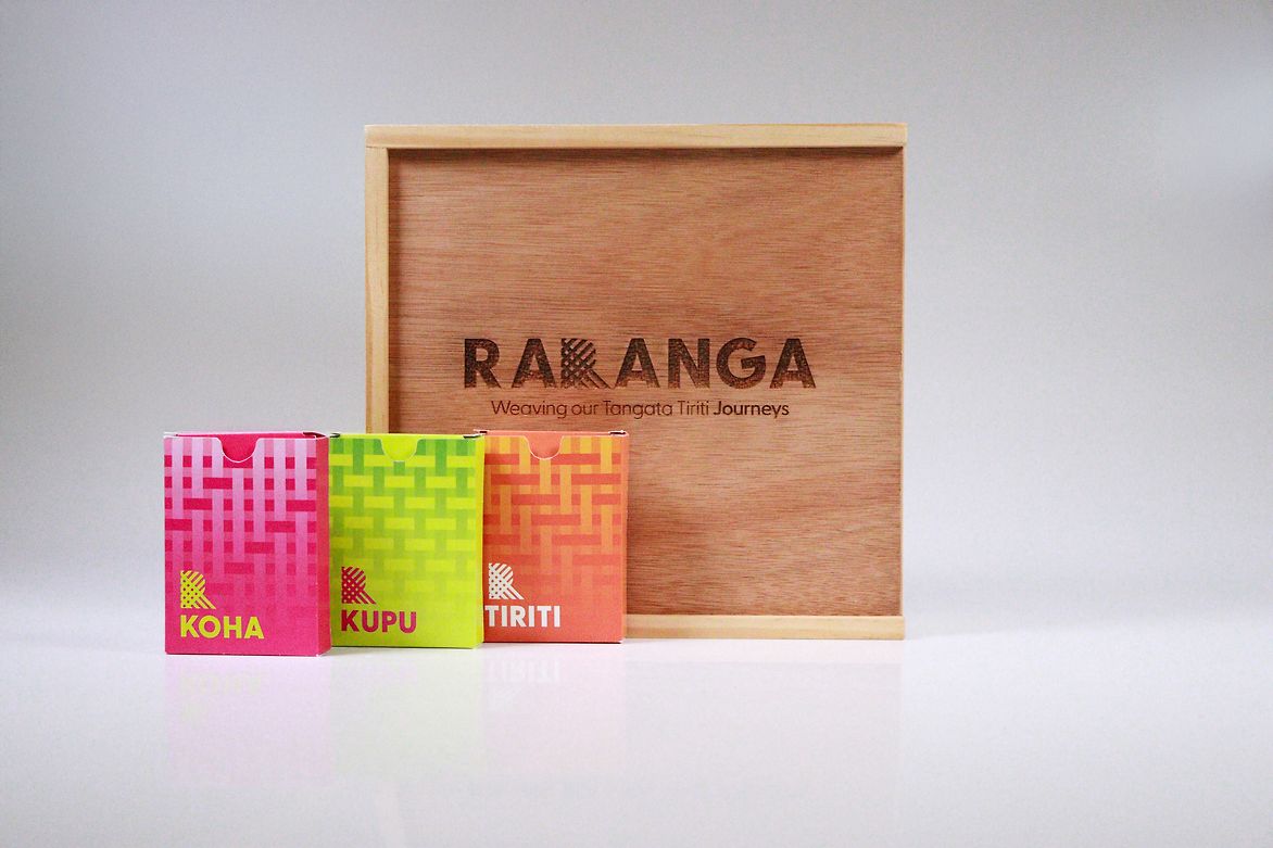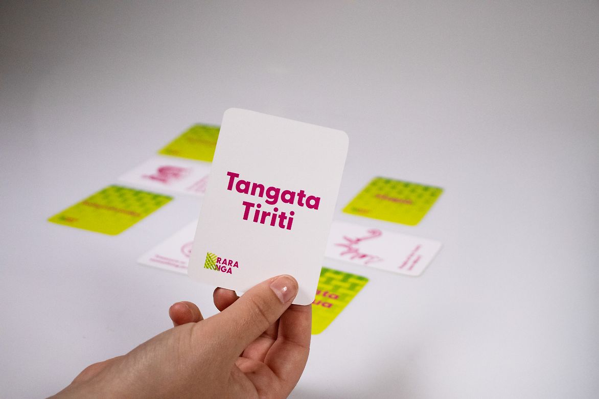 Raranga is an educational gamified toolkit developed to equip kaimahi with the skills and knowledge to assist them on their Tangata Tiriti journeys, with the ultimate goal of improving Māori workplace satisfaction for better systemic outcomes. The kēmu centres learning through collaboration, reflecting the traditional Māori art of raranga. The practice weaves together individual strands of harakeke to create something stronger, symbolising the collective journey towards embodying Te Tiriti. Raranga breaks down hierarchical power dynamics, creating a safe environment for collaboration and knowledge sharing. The project was born from an observation. Working and studying within large, colonial institutions, I saw firsthand how Māori staff were often expected to carry the cultural responsibilities of entire organisations. This additional burden, known as aronga takirua, reflects a systemic issue. While demand for Te Tiriti o Waitangi knowledge is growing, the responsibility for delivering it disproportionately falls on Māori. Raranga responds to this inequity by equipping tauiwi with tools to begin or deepen their own Tangata Tiriti journey. While originally developed for a workplace context, the kaupapa extends beyond. Raranga is about building relationships between Māori and tauiwi, between individuals and Te Tiriti, and between intention and action. The Hautū Waka framework guided the project, a non-linear Indigenous design model using tohu as navigational tools. Developed by Roimata Taniwha-Paoo and Ayla Hoeta, guided by Matua Rereata Makiha, it was designed to navigate complexity through Indigenous practice, building equity and wellbeing into systems. Wānanga was the central method used throughout the design process. These conversational spaces allowed for deeper insight and authentic engagement. The inspiration for the project came from the kinds of open, generative conversations that often arise while practising raranga. Sitting and weaving with my mum became a tohu for the project, through slow, reflective sessions that naturally created space for storytelling, learning, and deep listening. Playing Raranga, pairs collaborate to weave a takirua strand, competing in memory-based rounds that combine knowledge-sharing with playful learning. The game opens with a Koha Round, where players are gifted karakia and pepeha to ground the session in connection and intent. In the Kupu Round, teams race to define kupu Māori, building vocabulary essential to understanding Te Tiriti. The Tiriti Round is a Jeopardy-style quiz encouraging recall and critical thinking around Treaty concepts. The game ends with a second Koha Round, where players draw a mahi card, a take-home action or reflection to continue their Tangata Tiriti journey. Throughout, teams collect harakeke tokens as they learn, kōrero, and weave together.