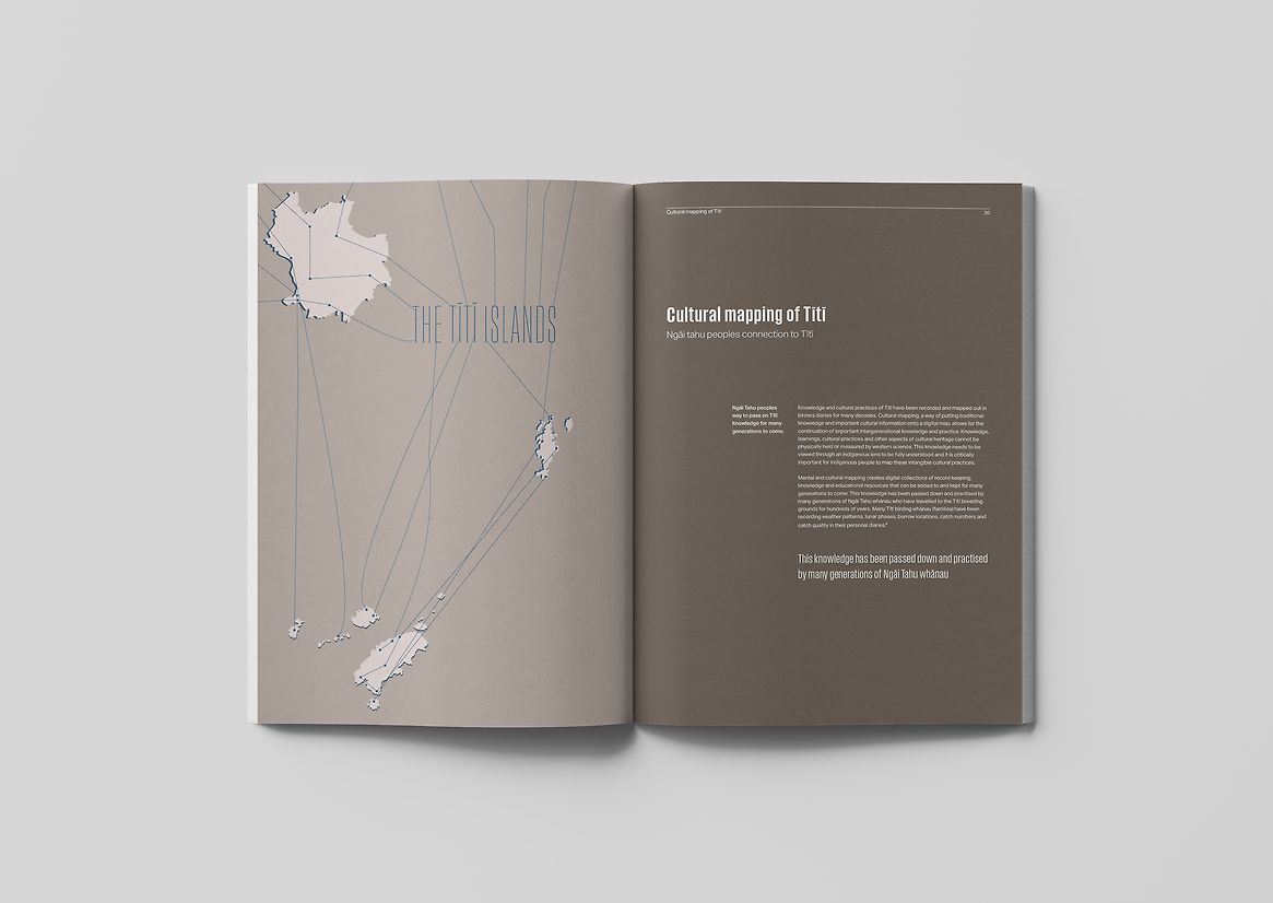 The story of the tītī (sooty shearwater) provides an unique insight into many aspects of society, place, practice and culture. The mapping of these domains allowed for an in depth investigation into the role of this culturally and economically significant species for the southernmost Māori tribal group of Ngāi Tahu. Tītī are harvested for food, as a trade item, and for their feathers and down. This book doesn't just look at the tangible aspects of mapping like migrational and foraging maps but also presents non-figurative representations such as the mapping of intergenerational knowledge, practices, and processes passed down from one generation to another. My target audience is intermediate kids to young teens, wildlife groups, Māori who are interested in understanding the significance and importance of the tītī and as a gift to whānau who still practise muttonbirding.