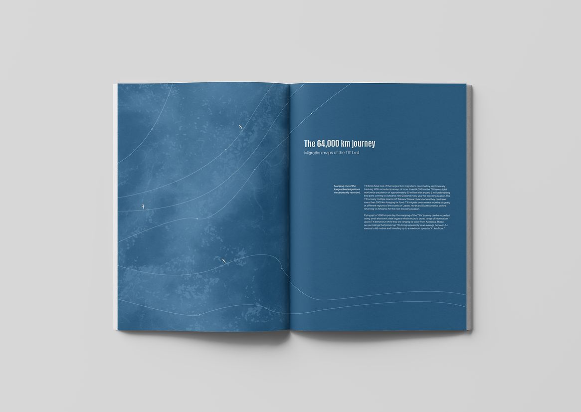 The Tītī bird, is a response to a brief set by the International Society of Typographic Designers called mapping the world. The objective is to conduct a rigorous exploration of maps in a chosen field which extends my skills in design research, conceptual thinking and communication through typography.