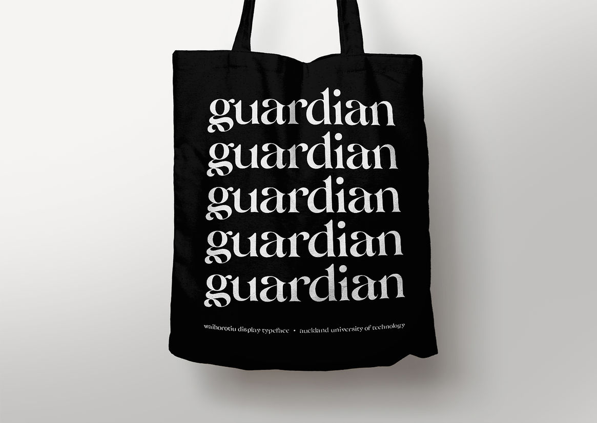 Guided by my kaiako, I began researching the spiritual realms of Tangata Whenua which informed both the macro and micro details of the letterforms.