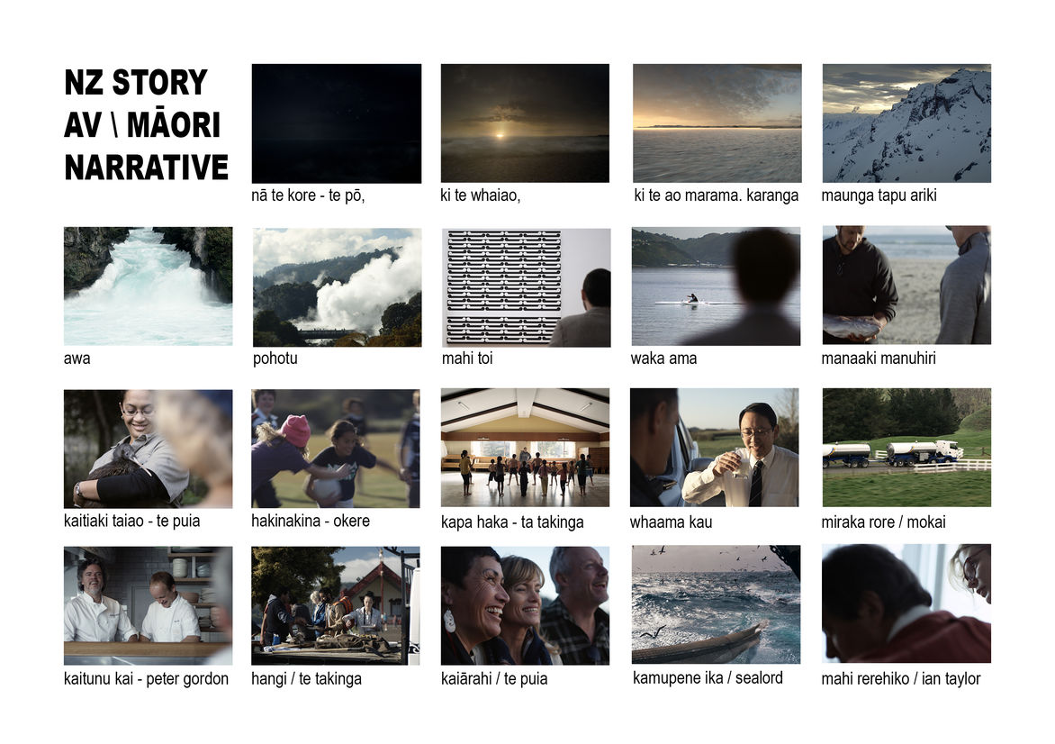 Karl Wixon. ARAHIA Pathfinders & Catherine Bates - Tourism NZ., Sven Baker, Noel Blackwell, Jef Wong, Michael Crampin. Designworks., Josh Lancaster & Jamie Hitchcock. Assignment., Tessa Shaw. Principals & Scott Lawrie. XXVI., Daryl Ward. Curious Films.