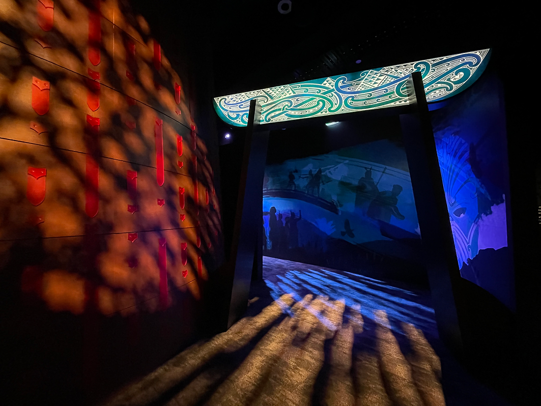 The development of the experience was grounded in mātauranga Māori, and driven by manaakitanga through consultation with mana whenua from ideation through to production and delivery. The graphics approach is driven by kaupapa Māori methodologies informed by kōrero and whakawhanaungatanga.