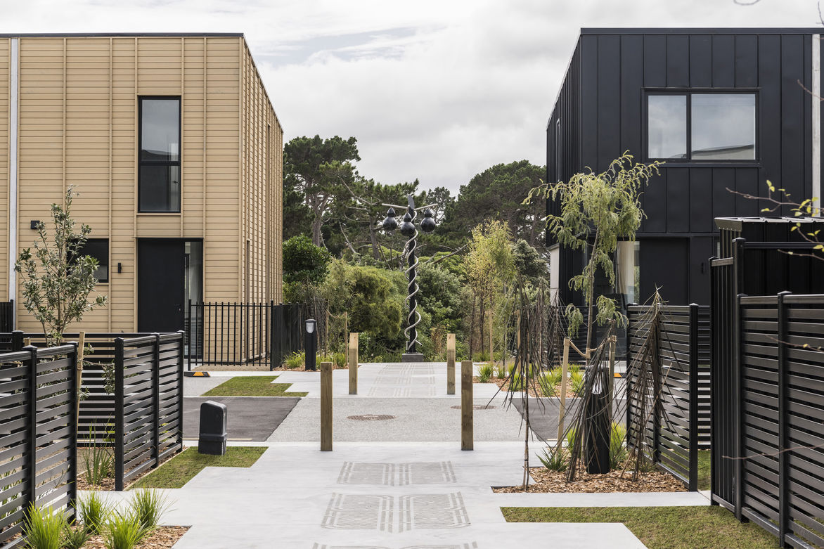 The development partnership worked closely with Taranaki Whanui in the cultural placemaking of the site, notably due to its relationship to the former Paetutu Kainga. This saw the reconnection of the site with its urban context via a pedestrian walkway to the river, which has been vested back to the community and tells the story of Marama and Rona via an embossed pathway and sculpture.