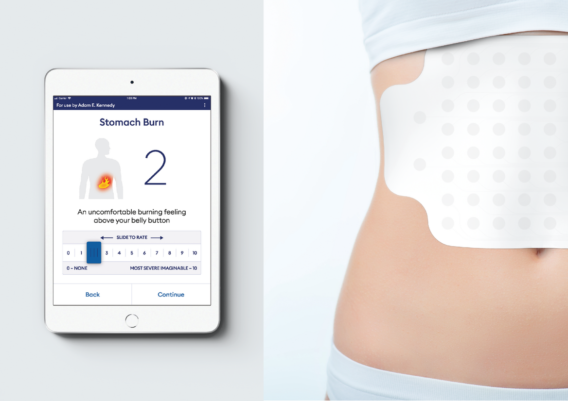 Gastric Alimetry is a lightweight, wireless medical device for aiding informed diagnostics of gastric dysfunction. A conformable patch of integrated electronic sensors is placed on the patient’s skin overlying the stomach. This detects gastric activity while patient symptoms are tracked via an intuitive app. Test data is sent to the cloud and processed using advanced algorithms, after which a detailed interactive report is generated for the clinician to inform patient care. From the conformable sensors to custom data visualisation, our approach was to put the user experience of both the clinician and the patient at the core of the system.