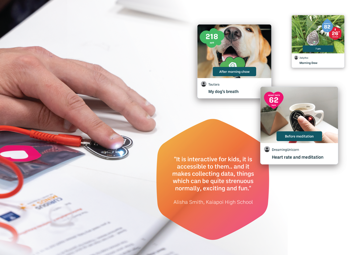 The sensors connect to an online platform designed to give a first-hand experience of the fun, creative and social nature of science. Students are challenged to make observations, present findings in creative ways, and discuss them with their friends.