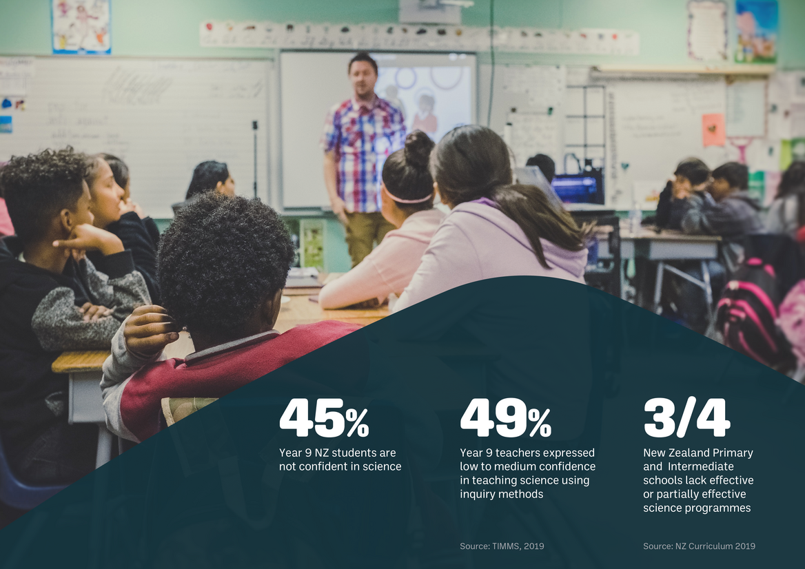 We created Kiwrious in response to an international study (TIMMS, 2019) that found 45% of Year 9 Kiwi students not confident in science. Lack of funding, limited resources and reduced teacher confidence in teaching science subjects is leading to low levels of scientific inquiry in children across the country.