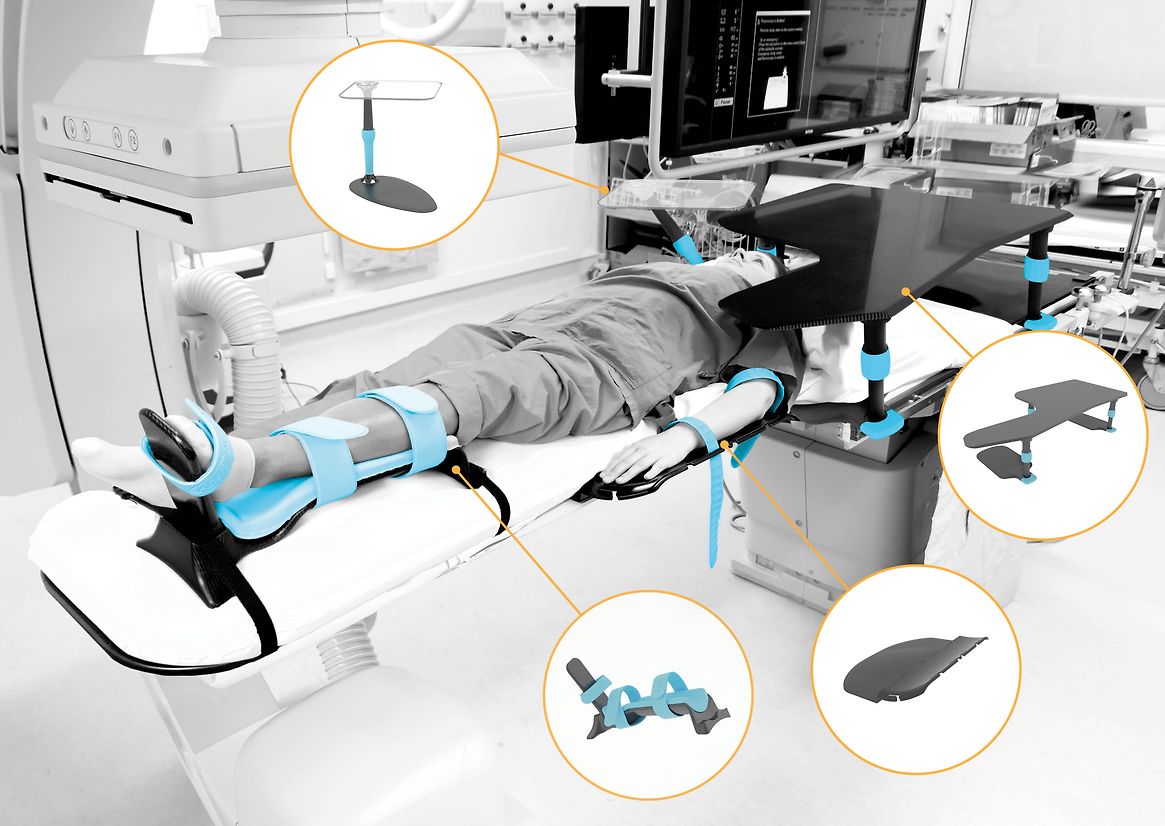 Our range of devices add value to the interventional industry through several ways. Clinicians and Patients: - Reducing X-ray artefact: our products are radiolucent for X-ray. - Reducing motion artefact: reduced patient movement during CT acquisition or contrast flush studies for treating limb ischemia or stroke clot retrieval. - Reducing clinician’s exposure to scatter radiation: scatter dose reduced at waist height, with 0° X-ray camera angle by 77% at operator waist height. - Reducing clinician’s radiation dose: presenting the patient optimally for imaging reduces radiation dose by 30%. - Reducing operator fatigue: through improved ergonomic positioning and workflow during image guided therapies, ensuring ongoing longevity of practice - Improving patient comfort: flexibility of positioning to suit body shapes and sizes Creation of the ITA range has also had a positive impact on our business financials: - Growth has been steady since the ITA range introduction. The first product of the ITA range, the STARSystem, being released in 2013. - Revenue for financial year end 2023 saw the ITA range contribute over $4 million NZD for the 12 months. This is a 625% increase from inception. - Further financial growth anticipated from the last 4 products launched in the last 12 months. Revenue from these is yet to impact. Capabilities - Developing in inhouse expertise in Carbon fibre composites has not been easy but over the 10 yr period we have created 5 full time roles producing this equipment. The design team was already skilled in taking external client briefs, and developing product designs through to mass manufacture. As we transitioned towards creating our own proprietary products, we too shifted to a systemic and holistic focus in our design process to better understand and support the needs of both patient and clinician in the interventional healthcare space through: - Embracing user centred design principles - Developing empathetic interviewing - Gaining MTANZ Certification for the design team to observe live medical cases - Developing prototypes iterations provoking good and bad feedback to improve our designs - Establishing in-house processes for validating new product opportunities - Building a network of willing clinicians who had issues they needed solving and were interested to be involved in the development of prototypes. - Developing a visual product development roadmap communicating the pipeline and giving visibility of the future range and direction - Solidifying a feedback process placing our designers on booth at international medical meetings, allowing them to hear product feedback first hand. Over the last 10 years we have designed our Imaging Table Accessories (ITA) range for use with C-arm Angiography, CT, MRI and Endoscopic Imaging systems. These are developed to complement brands such as Philips, Siemens, Toshiba & Medtronic. The range has been developed from the ground up and now consists of 12 different products, mostly free from metal to enable high radiolucency and not interfere with the Images used to guide the interventions. Outside of the primary use for Xray, our range is also designed to improve operator ergonomics, posture, and workflow/equipment management.