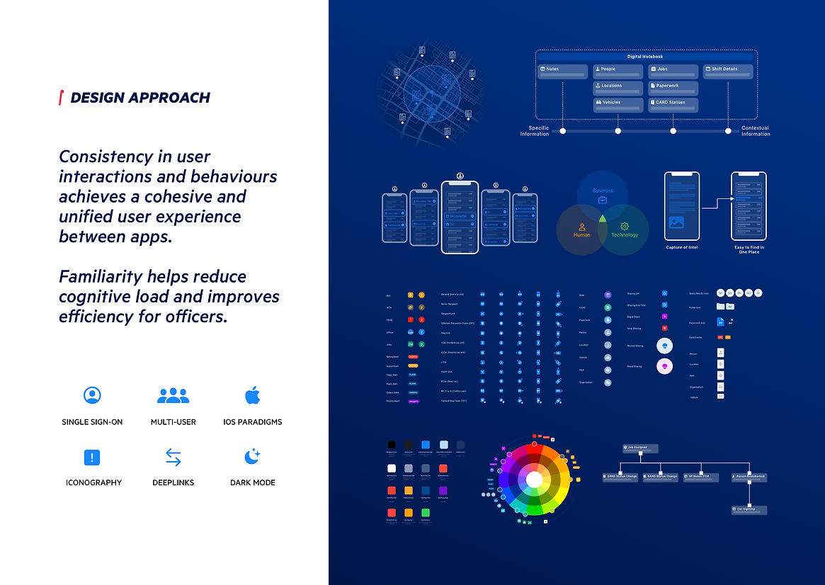 Throughout the process, our internal mantra of “fast, smart and easy” underpinned every aspect of the design and development process. The ecosystem has a shared design language that allows officers to seamlessly navigate between applications, reducing cognitive load and improving efficiency. A key goal was to create consistency in user interactions and behaviours between apps to achieve familiarity and increase learnability.